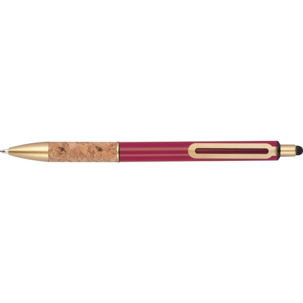 Metalowy długopis z złotymi elementami i korkową strefą uchwytu to elegancka propozycja, która łączy nowoczesny design z naturalnymi akcentami. Wyposażony w gumkę do obsługi ekranów dotykowych oraz wkład piszący na niebiesko, zapewnia wygodę i płynność pisania, a także umożliwia wygodne korzystanie z urządzeń mobilnych.Idealny do biura, na prezent czy do codziennych notatek, ten długopis łączy estetykę, funkcjonalność i komfort, stając się niezawodnym narzędziem w każdej sytuacji.