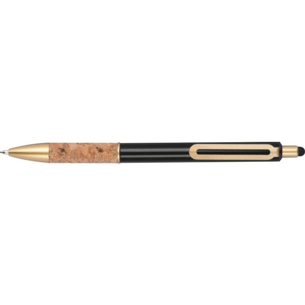 Metalowy długopis z złotymi elementami i korkową strefą uchwytu to elegancka propozycja, która łączy nowoczesny design z naturalnymi akcentami. Wyposażony w gumkę do obsługi ekranów dotykowych oraz wkład piszący na niebiesko, zapewnia wygodę i płynność pisania, a także umożliwia wygodne korzystanie z urządzeń mobilnych.Idealny do biura, na prezent czy do codziennych notatek, ten długopis łączy estetykę, funkcjonalność i komfort, stając się niezawodnym narzędziem w każdej sytuacji.
