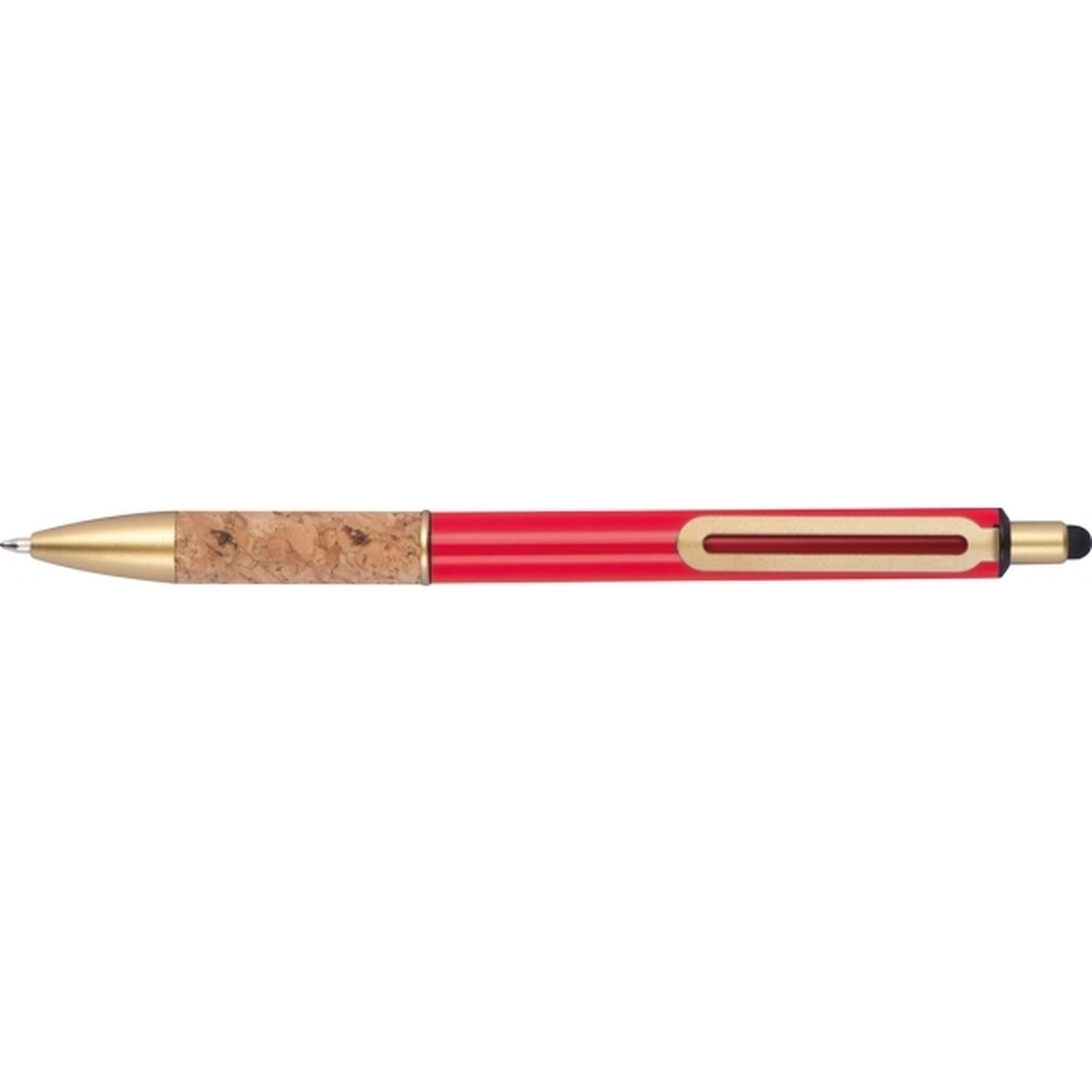 Metalowy długopis z złotymi elementami i korkową strefą uchwytu to elegancka propozycja, która łączy nowoczesny design z naturalnymi akcentami. Wyposażony w gumkę do obsługi ekranów dotykowych oraz wkład piszący na niebiesko, zapewnia wygodę i płynność pisania, a także umożliwia wygodne korzystanie z urządzeń mobilnych.Idealny do biura, na prezent czy do codziennych notatek, ten długopis łączy estetykę, funkcjonalność i komfort, stając się niezawodnym narzędziem w każdej sytuacji.