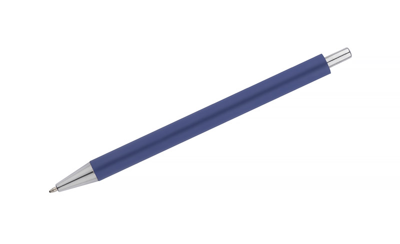 Długopis NOVI wykończony przyjemna w dotyku gumowana powierzchnią z chromowanymi elemantami w kolorze srebrnym.