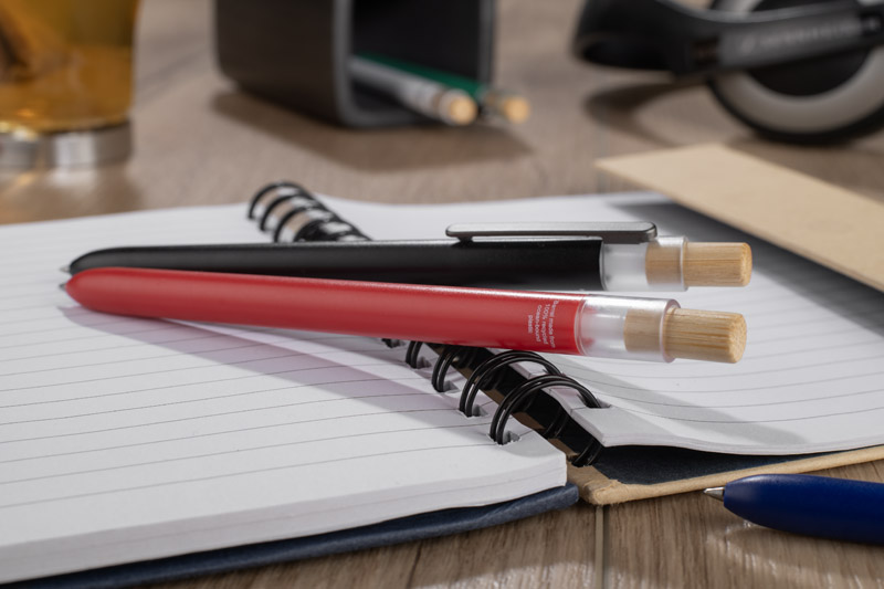 Długopis OCEANO wykonany jest z materiału pochodzącego z odpadów ocean bound – tworzyw zbieranych z terenów przybrzeżnych, zanim trafią do mórz i oceanów.