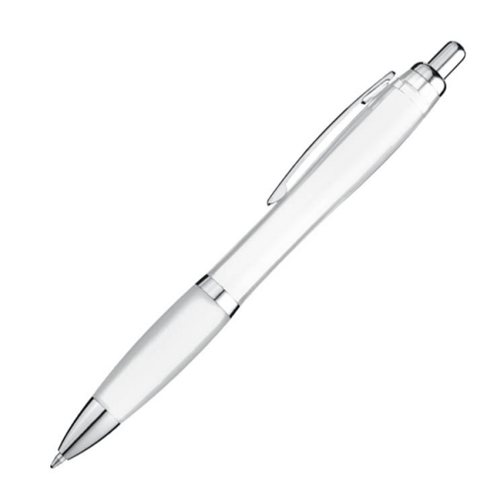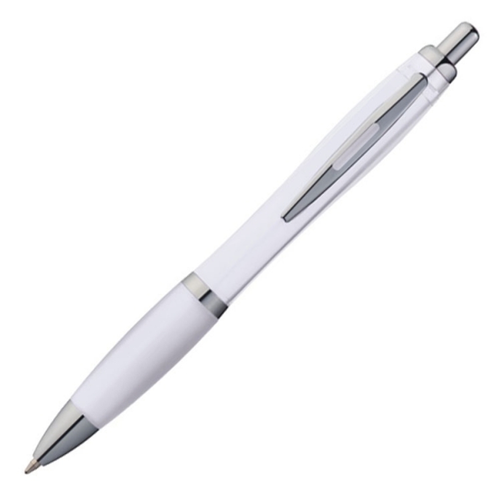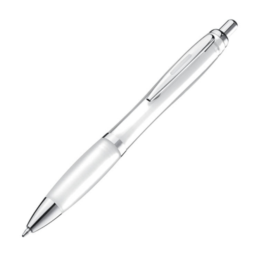 Ten długopis to sprawdzony wybór dla osób poszukujących funkcjonalnego i niedrogiego gadżetu reklamowego. Wykonany z plastiku, posiada antypoślizgową gumkę oraz błyszczące elementy, które dodają mu klasycznego wyglądu. Ten model długopisu ze średnicą korpusu ok.1,3 cm jest idealny do umieszczenia logo firmy.