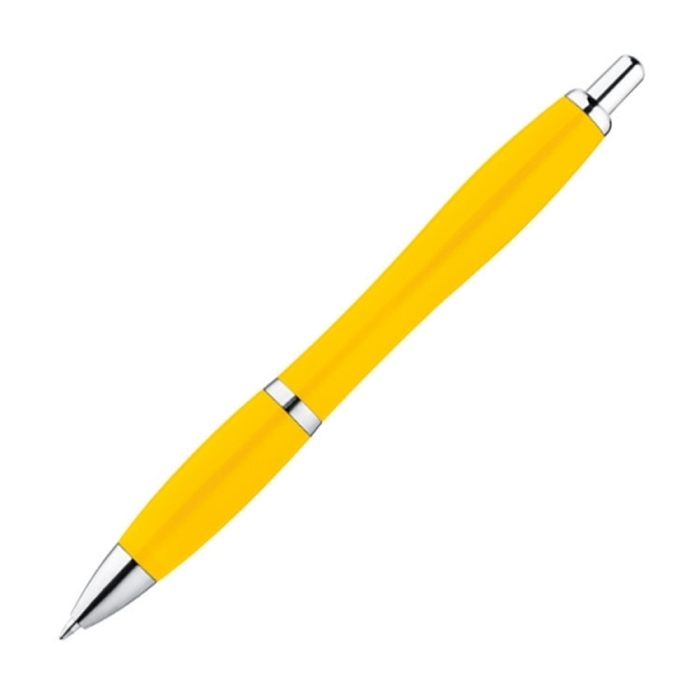 Długopis plastikowy wyposażony w system typu klik oraz niebieski wkład.