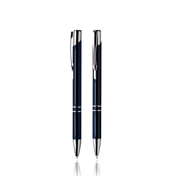 Długopis plastikowy z metalowym klipsem i mechanizmem wciskanym, pisze na czarno.
