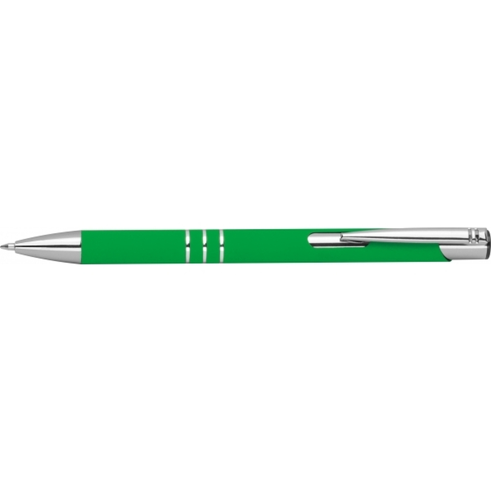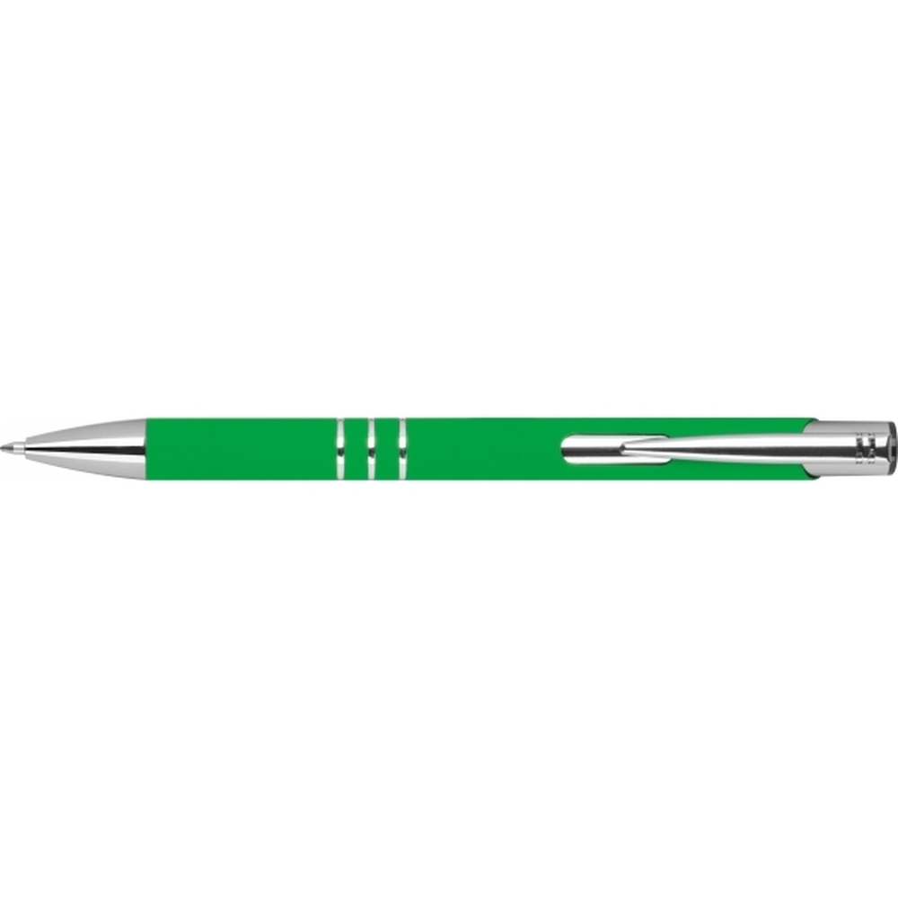 Długopis charakteryzuje się srebrnym wykończeniem klipsu oraz trzema ringami, które elegancko dekorują jego korpus. Powłoka długopisu typu soft touch jest przyjemna w dotyku i umożliwia wykonanie na nim precyzyjnego grawera, dzięki czemu gadżet ten idealnie nadaje się do promowania marki.Cechy ogólne:Długopis półżelowy.Grubość kreski ok. 0,7 mm.Materiał: aluminimum.