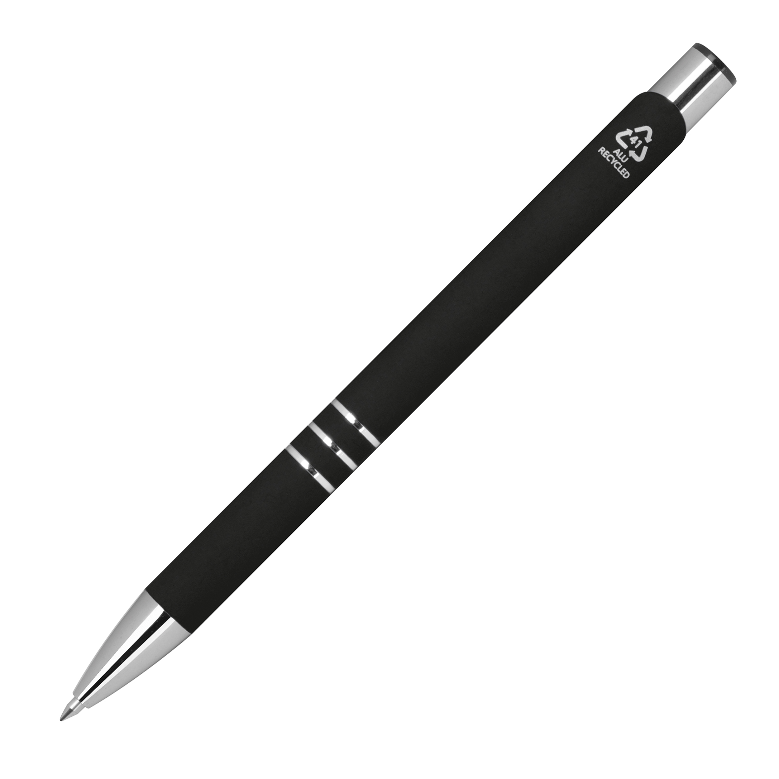 Długopis wykonany z aluminium z recyklingu, z gumową powłoką i wkładem półżelowym, piszącym na niebiesko (0,7 mm).