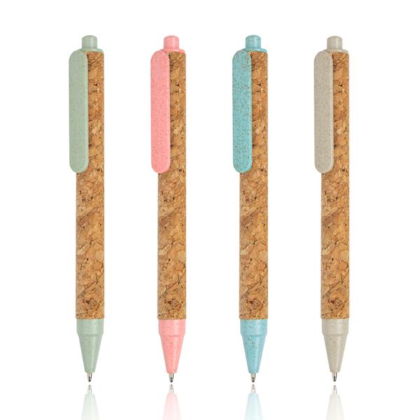 Długopis z korka z elementami z włókna pszenicy.