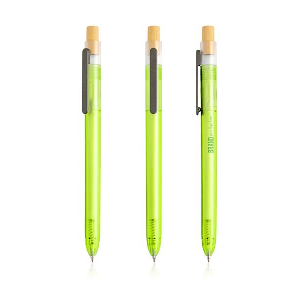Długopis z bambusowym detalem.