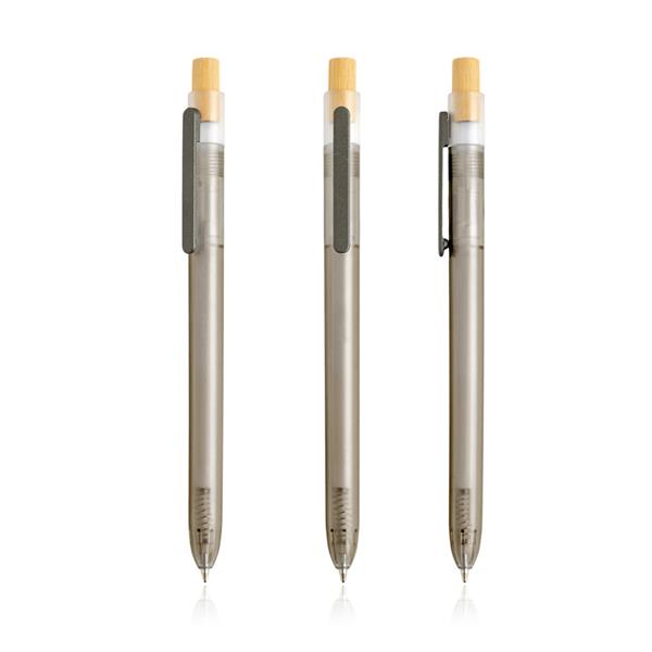 Długopis z bambusowym detalem.
