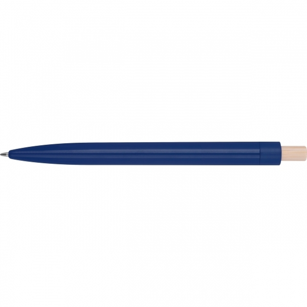 Naturalny bambusowy przycisk stanowi wyjątkowy element designu, wprowadzając ciepło i elegancję, które podkreślają dbałość o środowisko. Wkład w kolorze niebieskim gwarantuje wyraźne i płynne pismo, co ułatwia sporządzanie notatek czy podpisywanie dokumentów.