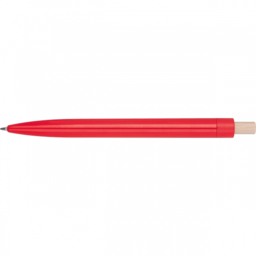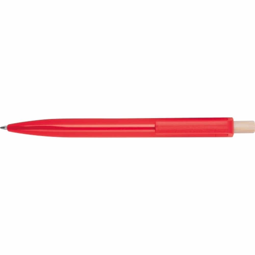 Długopis wykonany z recyklingowego ABS z bambusowym przyciskiem.