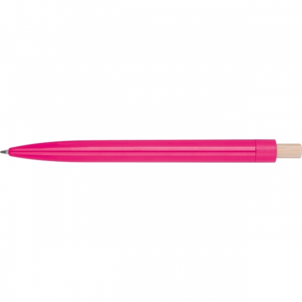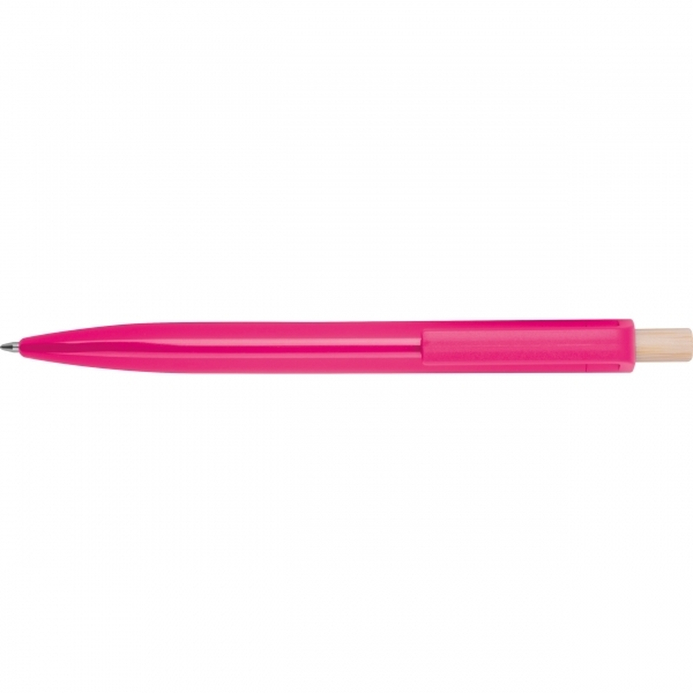 Długopis wykonany z recyklingowego ABS z bambusowym przyciskiem.