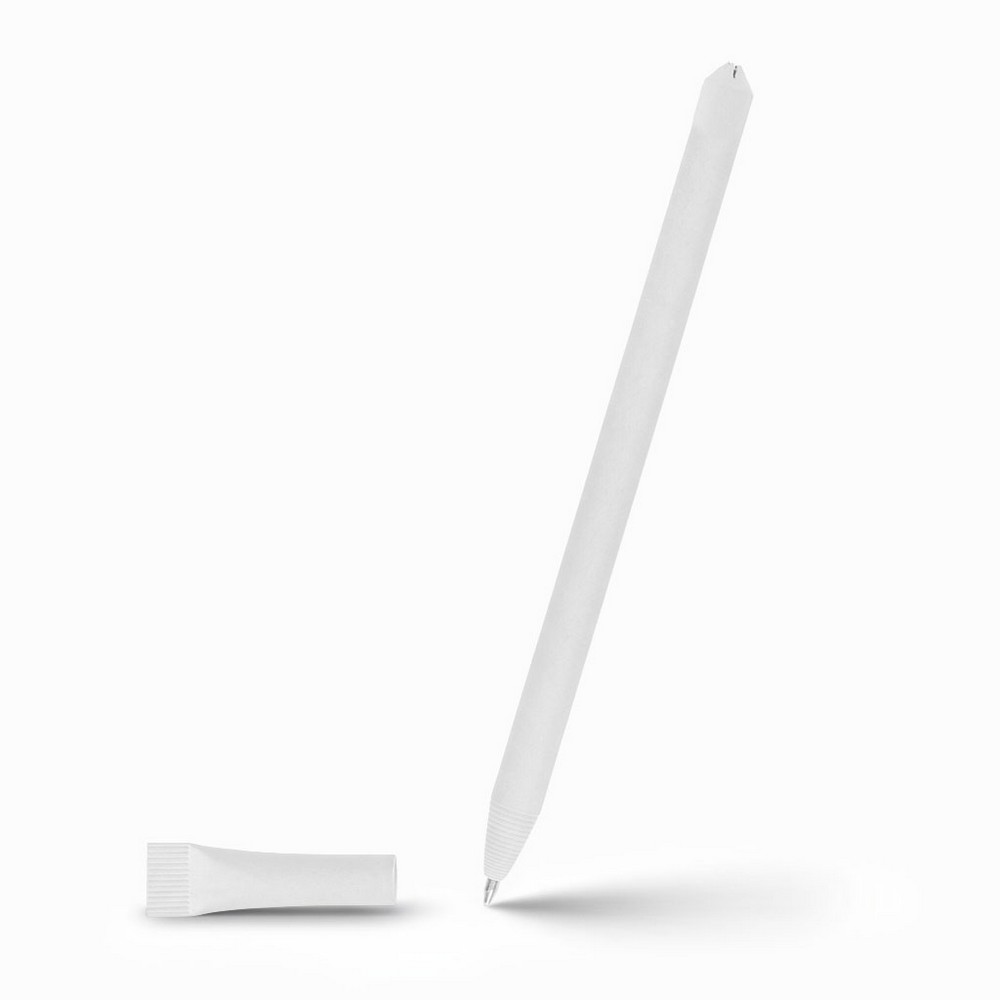 Długopis z dopasowaną kolorystycznie zatyczką, wkład w niebieskim kolorze, produkt wykonany ze zrolowanego papieru