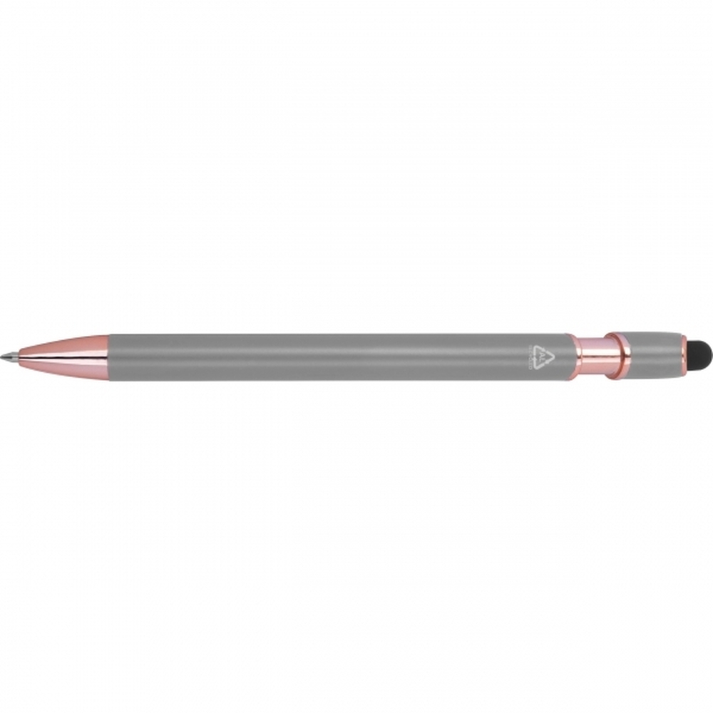 Długopis żelowy wykonany z recyklingowego aluminium z funkcją touch pen i niebieskim wkładem o dużej pojemności (końcówka 1 mm).