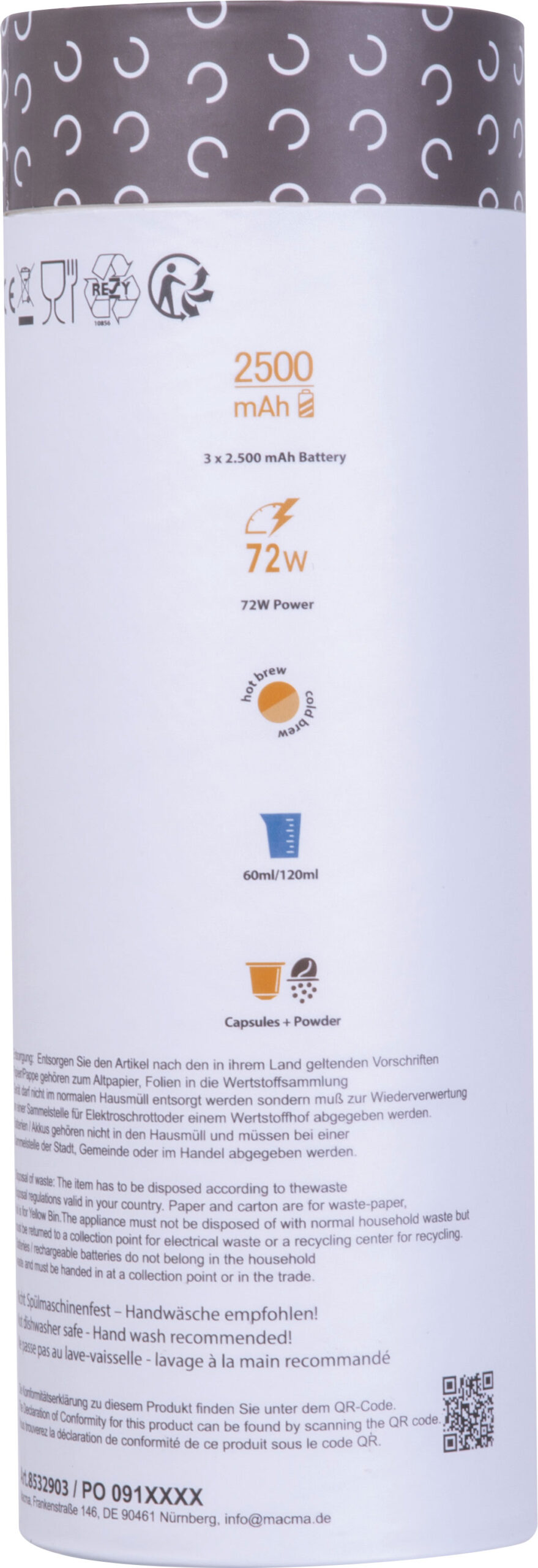 Zbiornik o pojemności 60 ml oraz wydajny system podgrzewania umożliwiają przygotowanie napoju zarówno na gorąco, jak i na zimno. Dodatkową wygodę daje wyjmowany uchwyt na kapsułki, który pozwala korzystać zarówno z kapsułek, jak i kawy mielonej. W zestawie znajduje się także kubek, dzięki czemu wszystko, czego potrzeba, jest od razu pod ręką.