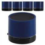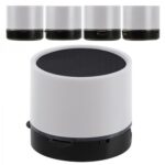 Mini głośnik Bluetooth TAIFUN w plastikowej obudowie z metalicznym wykończeniem.