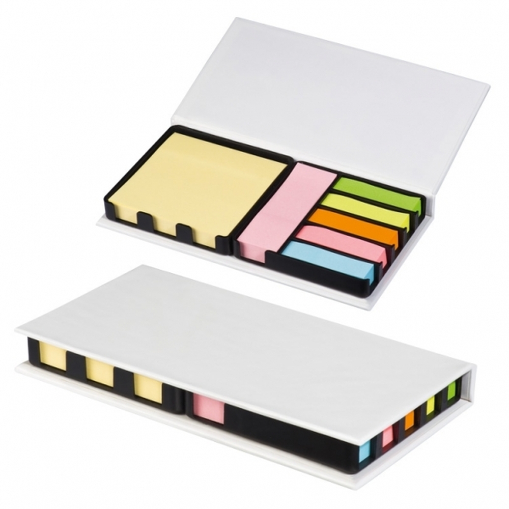 Dodatkowo, zestaw zawiera około 90 zakładek memo w pięciu różnorodnych kolorach, dzięki którym łatwo wyróżnisz i posegregujesz notatki według kategorii lub priorytetów. Wykonane z wysokiej jakości papieru elementy cechują się trwałością i komfortem użytkowania, a ich samoprzylepna warstwa gwarantuje mocne przyleganie bez pozostawiania śladów po usunięciu.