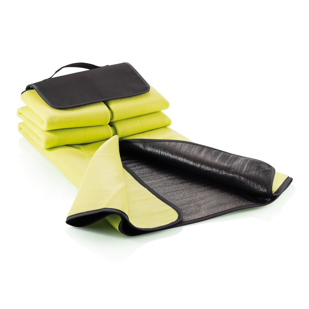 Koc piknikowy z wodoodpornym podbiciem, wykonany z polaru 160GSM, EPE i PE, rozmiar rozłożonego koca 130 x 145 cm, ślad węglowy produktu: 3,97 kg CO2