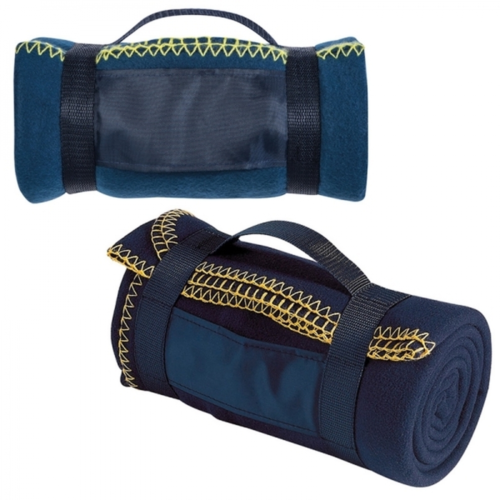 Koc z miękkiego polaru. Posiada praktyczny pasek z uchwytami do noszenia. Gramatura 170 g/m².