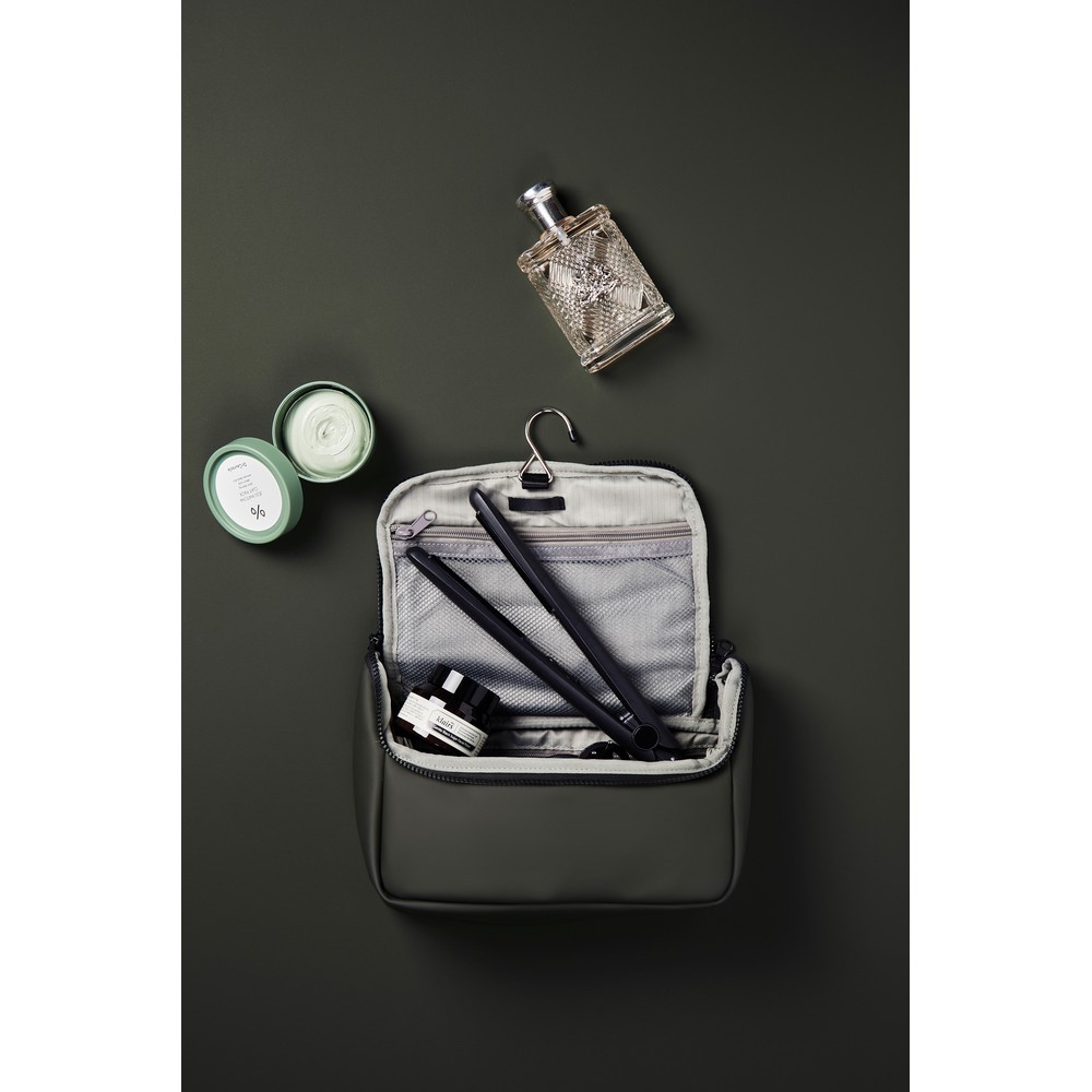 Kosmetyczka, wykonana z wodoodpornego nubuku i PU, mniejsze kieszenie wewnątrz, posiada haczyk do zawieszenia, łatwa w czyszczeniu