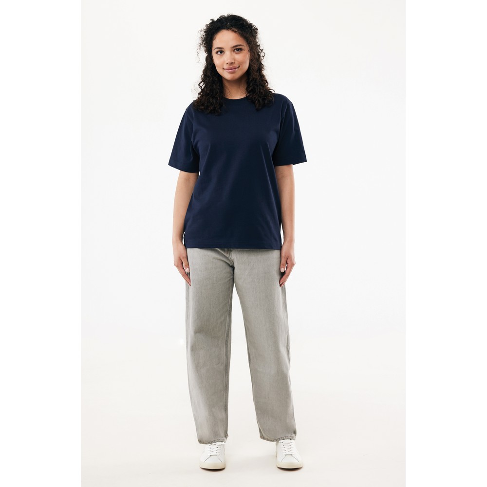 Koszulka, unisex, nowoczesny krój, okrągły dekolt, krótkie rękawy, wykonana w 50% z bawełny z recyklingu i w 50% z bawełny organicznej o gramaturze 220 g/m2, bez dodatku poliestru, posiada wbudowany znacznik AWARE™, który potwierdza wykorzystanie materiałów z recyklingu, posiada kod QR na metce, który prowadzi do cyfrowego paszportu produktu, 2% wpływów z każdego sprzedanego produktu jest przekazywane na rzecz Water.org