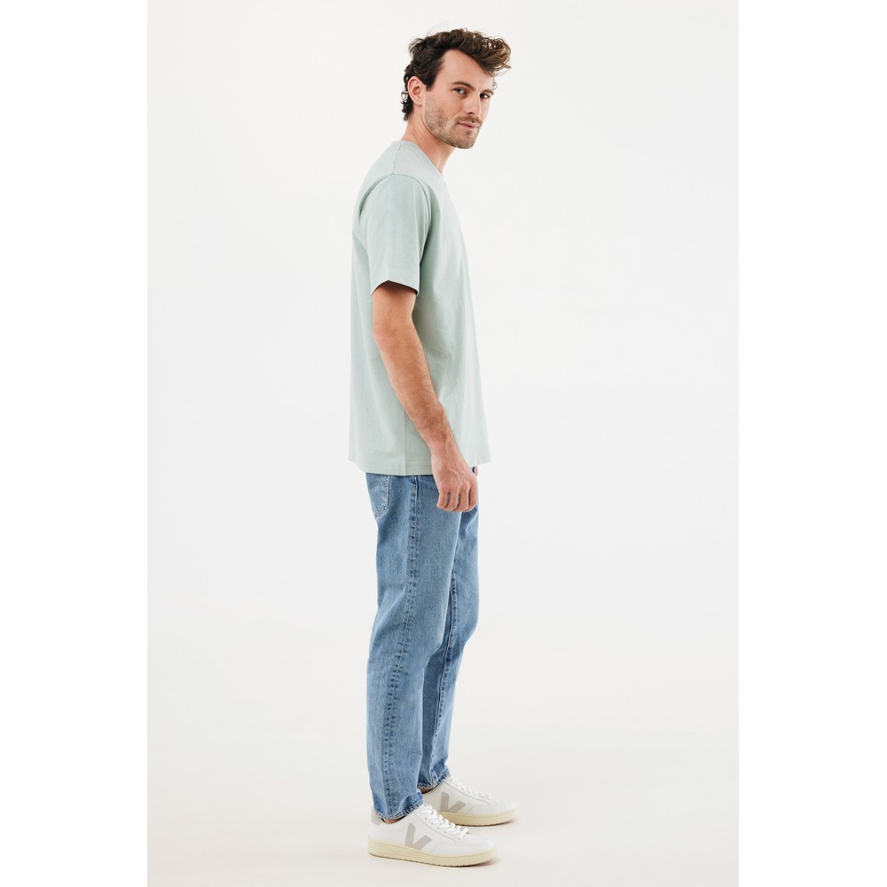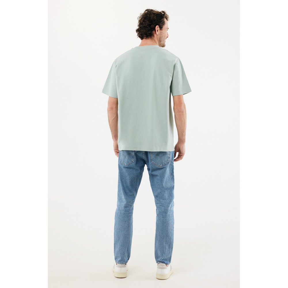Koszulka, unisex, nowoczesny krój, okrągły dekolt, krótkie rękawy, wykonana w 50% z bawełny z recyklingu i w 50% z bawełny organicznej o gramaturze 220 g/m2, bez dodatku poliestru, posiada wbudowany znacznik AWARE™, który potwierdza wykorzystanie materiałów z recyklingu, posiada kod QR na metce, który prowadzi do cyfrowego paszportu produktu, 2% wpływów z każdego sprzedanego produktu jest przekazywane na rzecz Water.org