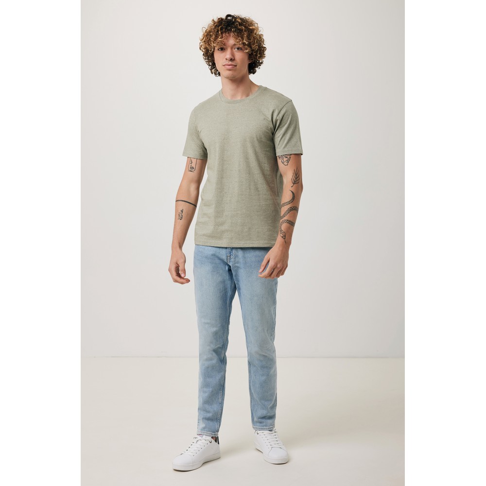 Koszulka, unisex, regularny krój, okrągły dekolt, krótkie rękawy, wykonana w 30% z bawełny z recyklingu i w 70% z bawełny organicznej o gramaturze 180 g/m2, bez dodatku poliestru, posiada wbudowany znacznik AWARE™, który potwierdza wykorzystanie materiałów z recyklingu, posiada kod QR na metce, który prowadzi do cyfrowego paszportu produktu, 2% wpływów z każdego sprzedanego produktu z kolekcji Impact jest przekazywane na rzecz Water.org