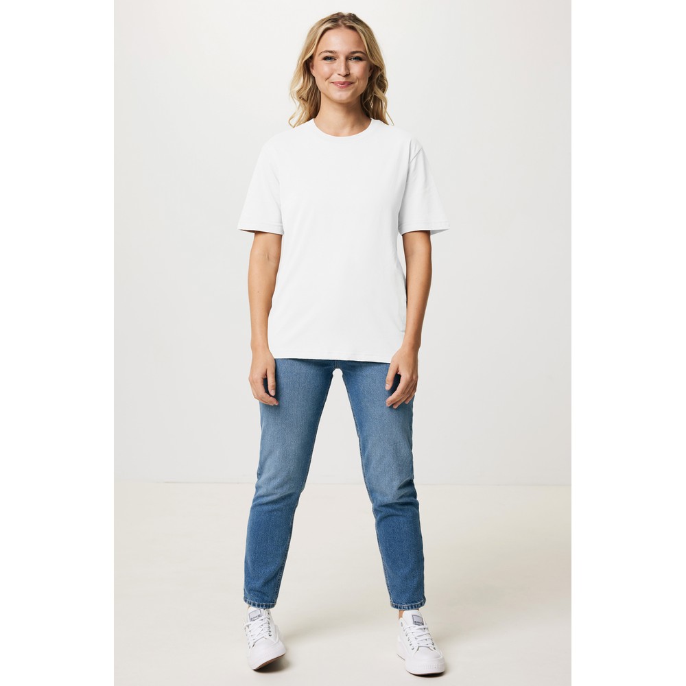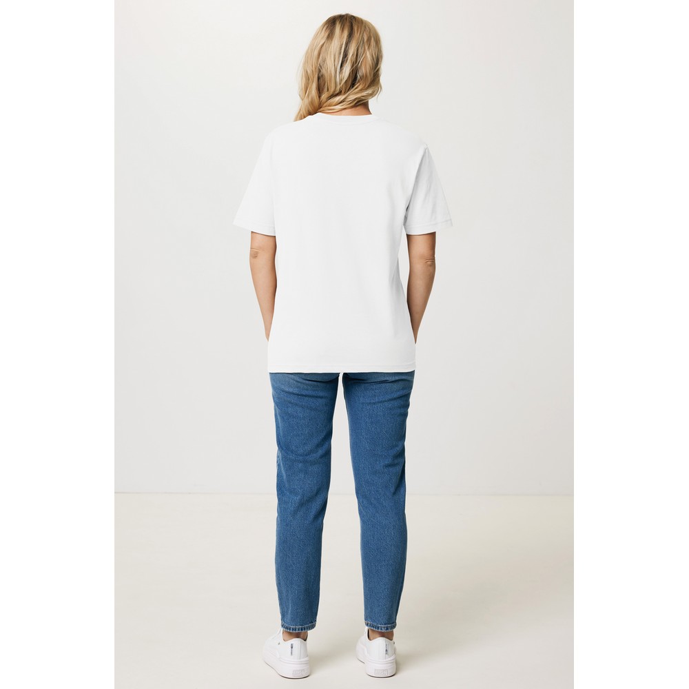 Koszulka, unisex, regularny krój, okrągły dekolt, krótkie rękawy, wykonana w 50% z bawełny z recyklingu i w 50% z bawełny organicznej o gramaturze 180 g/m2, bez dodatku poliestru, posiada wbudowany znacznik AWARE™, który potwierdza wykorzystanie materiałów z recyklingu, posiada kod QR na metce, który prowadzi do cyfrowego paszportu produktu, 2% wpływów z każdego sprzedanego produktu z kolekcji Impact jest przekazywane na rzecz Water.org