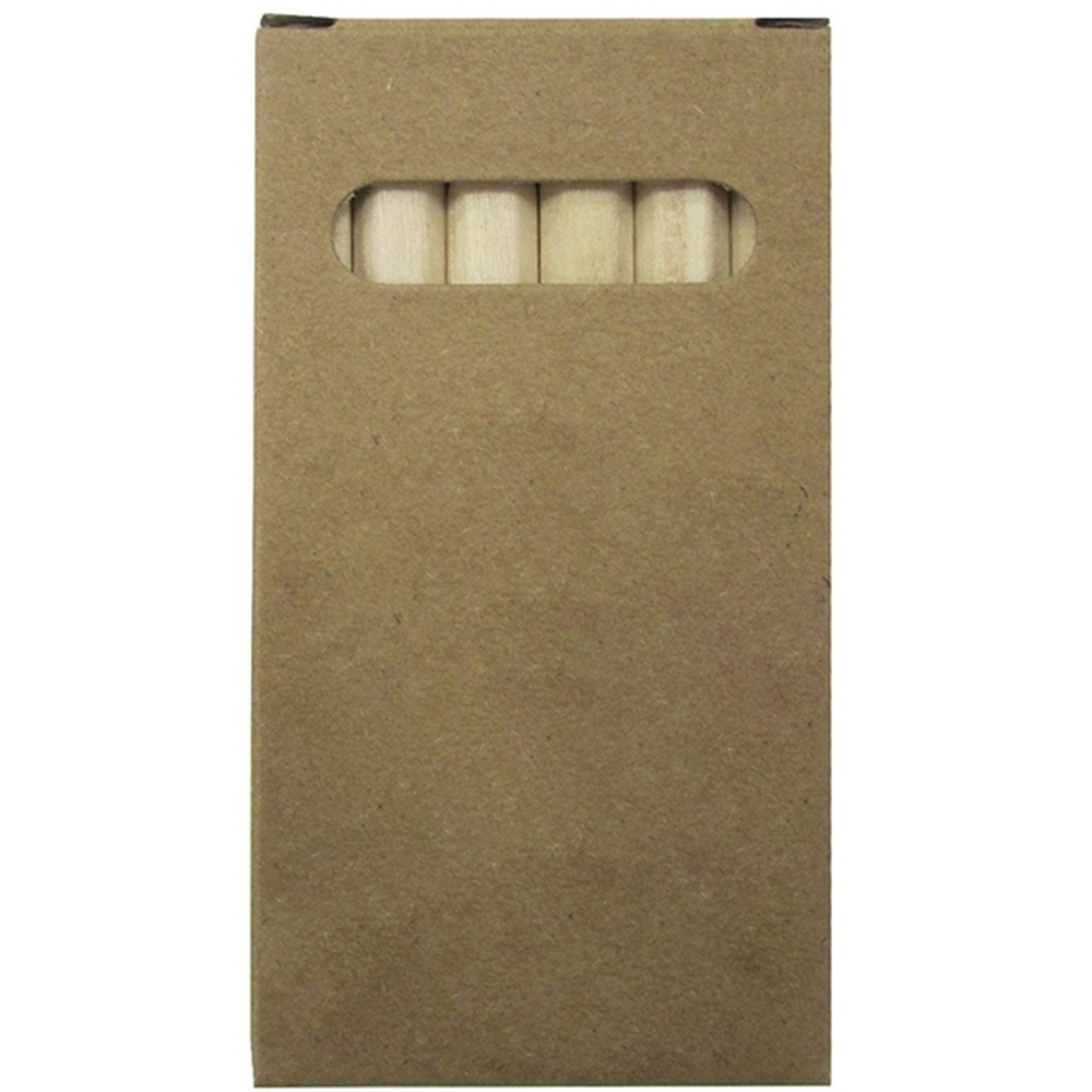 Zestaw kredek drewnianych mini, który zawiera 6 sztuk, zapakowany w tekturowym opakowaniu.