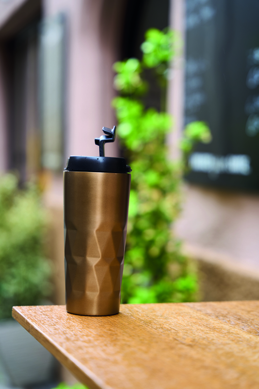 Kubek termiczny wykonany ze stali nierdzewnej z podwójnymi ściankami o pojemności 500 ml.