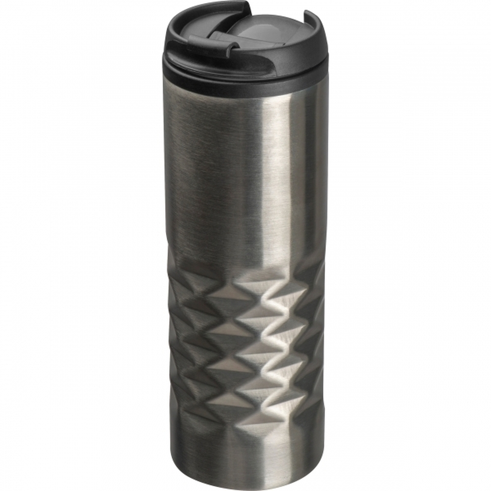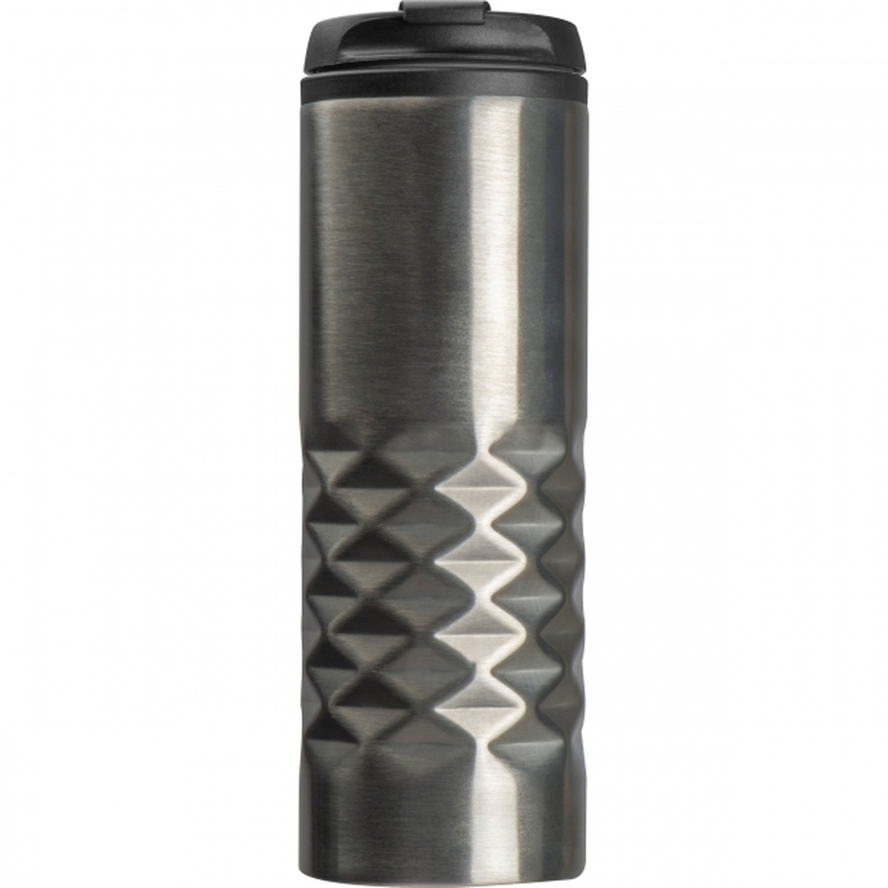 Stalowy kubek termiczny o pojemności 500 ml, ze szczelnym ustnikiem.