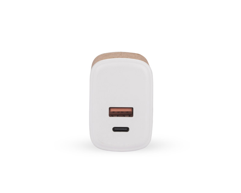 Ładowarka sieciowa BLOSETO to praktyczny gadżet umożliwiający ładowanie urządzeń mobilnych za pomocą wbudowanego portu USB-A i portu typu C.