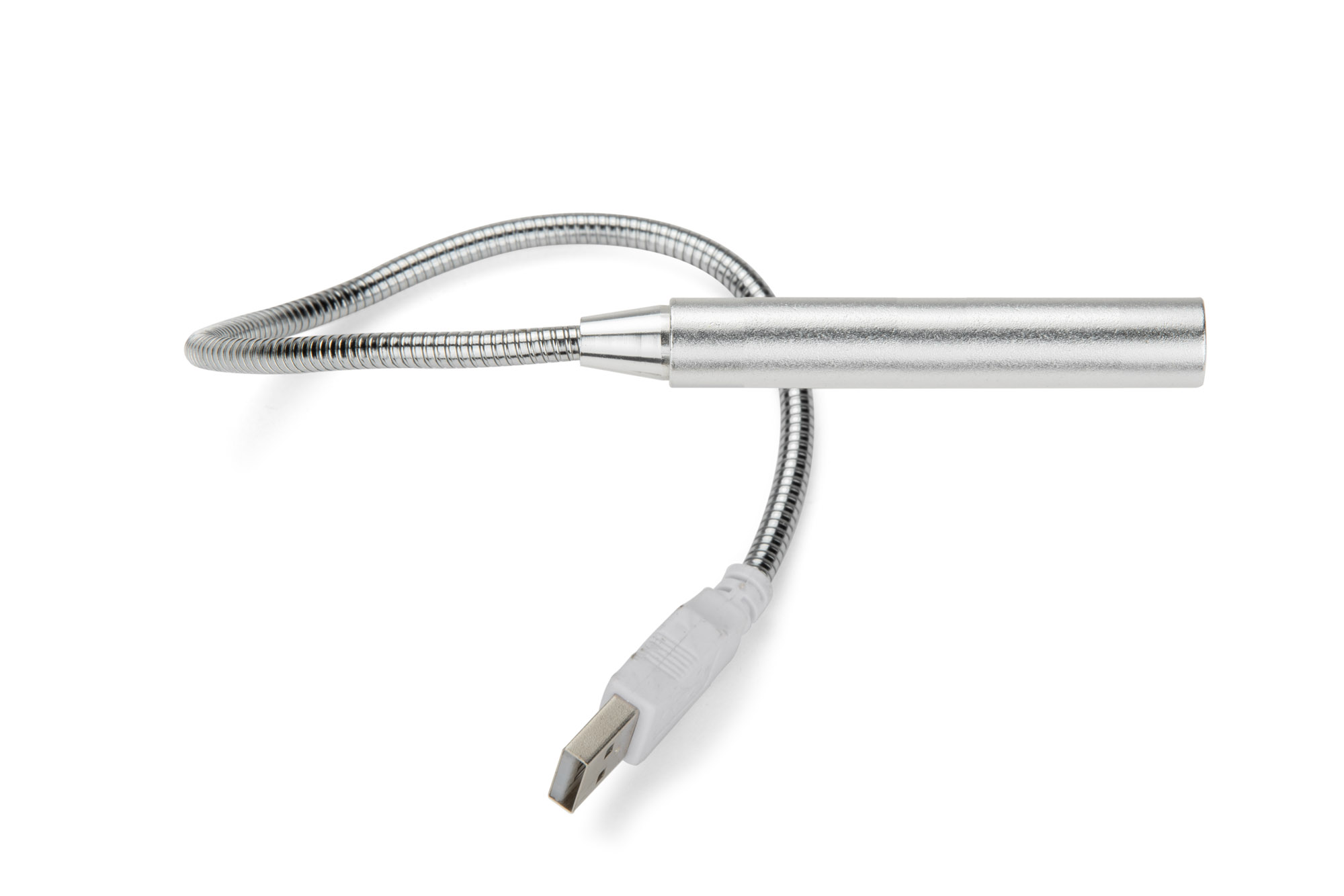 Lampka wykonana z metalu zasilana energią z portu USB, np.