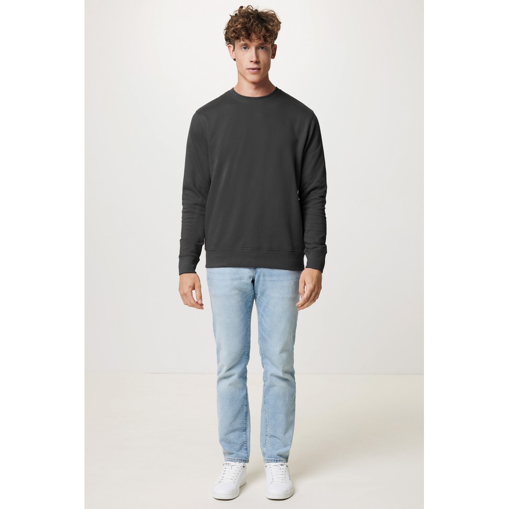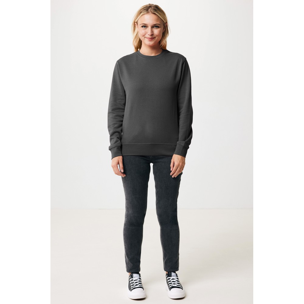 Lekki sweter, unisex, regularny krój, okrągły dekolt, długie rękawy, wykonana w 30% z bawełny z recyklingu i w 70% z bawełny organicznej o gramaturze 280 g/m2, posiada wbudowany znacznik AWARE™, który potwierdza wykorzystanie materiałów z recyklingu, posiada kod QR na metce, który prowadzi do cyfrowego paszportu produktu, 2% wpływów z każdego sprzedanego produktu z kolekcji Impact jest przekazywane na rzecz Water.org