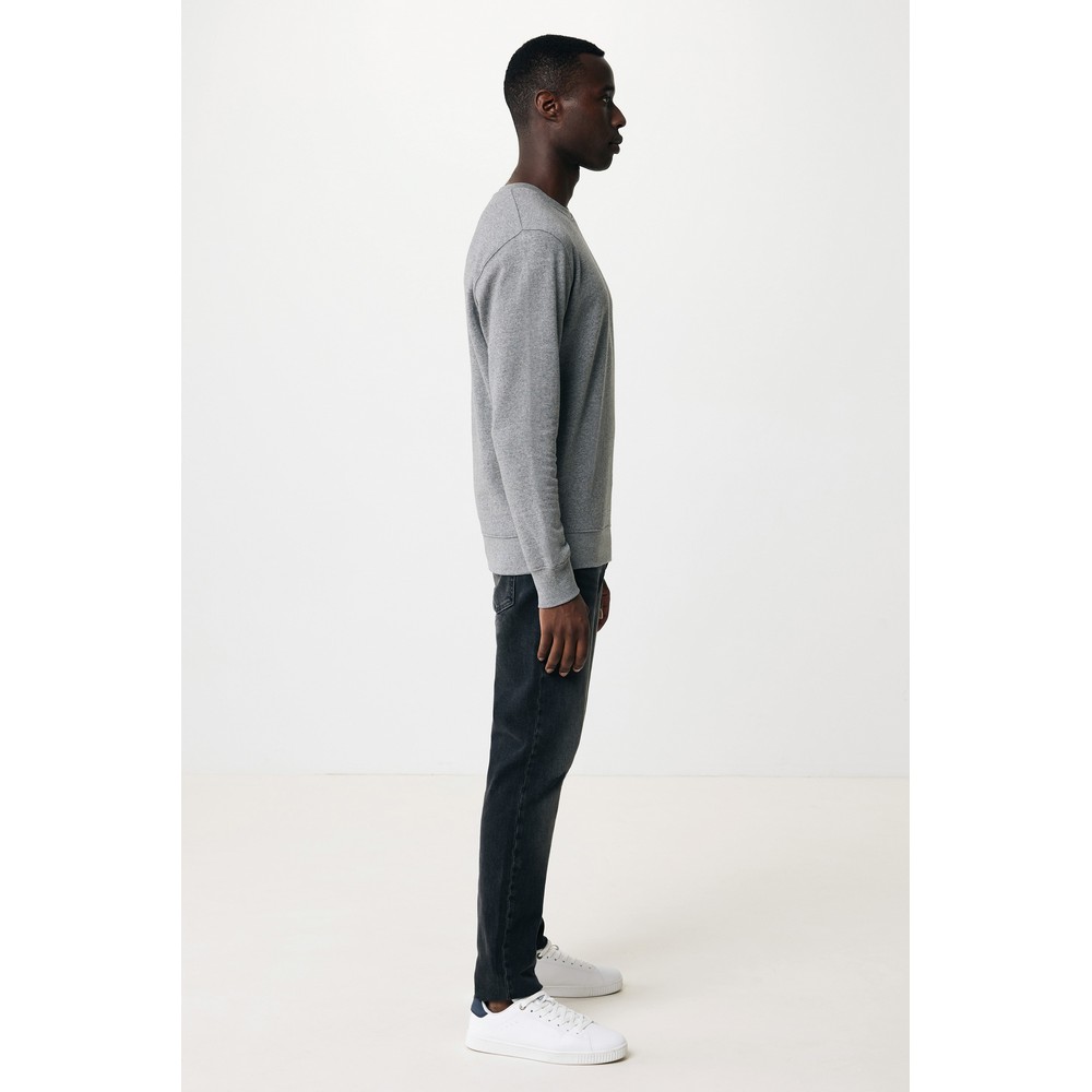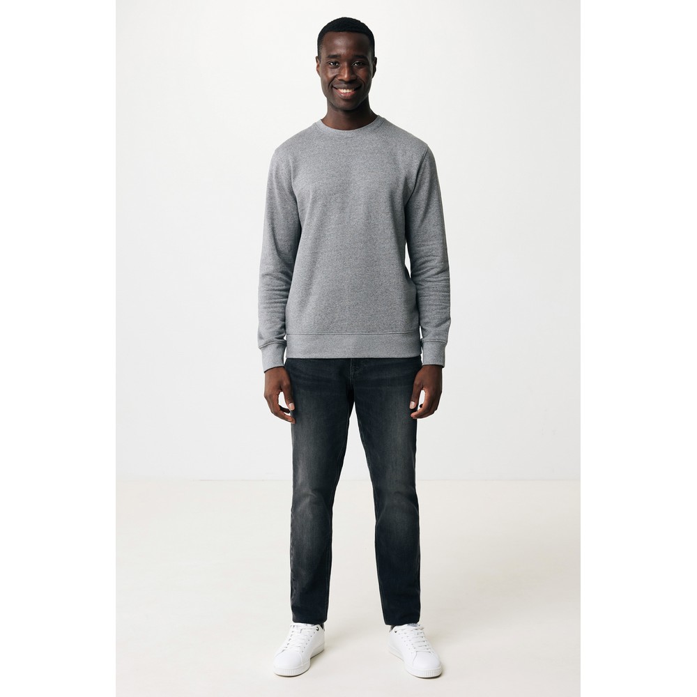 Lekki sweter, unisex, regularny krój, okrągły dekolt, długie rękawy, wykonana w 30% z bawełny z recyklingu i w 70% z bawełny organicznej o gramaturze 280 g/m2, posiada wbudowany znacznik AWARE™, który potwierdza wykorzystanie materiałów z recyklingu, posiada kod QR na metce, który prowadzi do cyfrowego paszportu produktu, 2% wpływów z każdego sprzedanego produktu z kolekcji Impact jest przekazywane na rzecz Water.org
