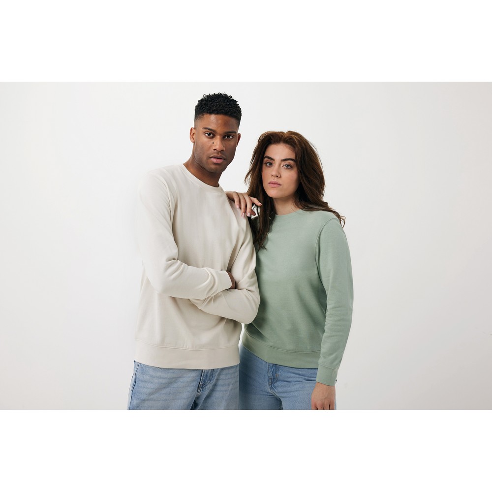 Lekki sweter, unisex, regularny krój, okrągły dekolt, długie rękawy, wykonana w 30% z bawełny z recyklingu i w 70% z bawełny organicznej o gramaturze 280 g/m2, posiada wbudowany znacznik AWARE™, który potwierdza wykorzystanie materiałów z recyklingu, posiada kod QR na metce, który prowadzi do cyfrowego paszportu produktu, 2% wpływów z każdego sprzedanego produktu z kolekcji Impact jest przekazywane na rzecz Water.org