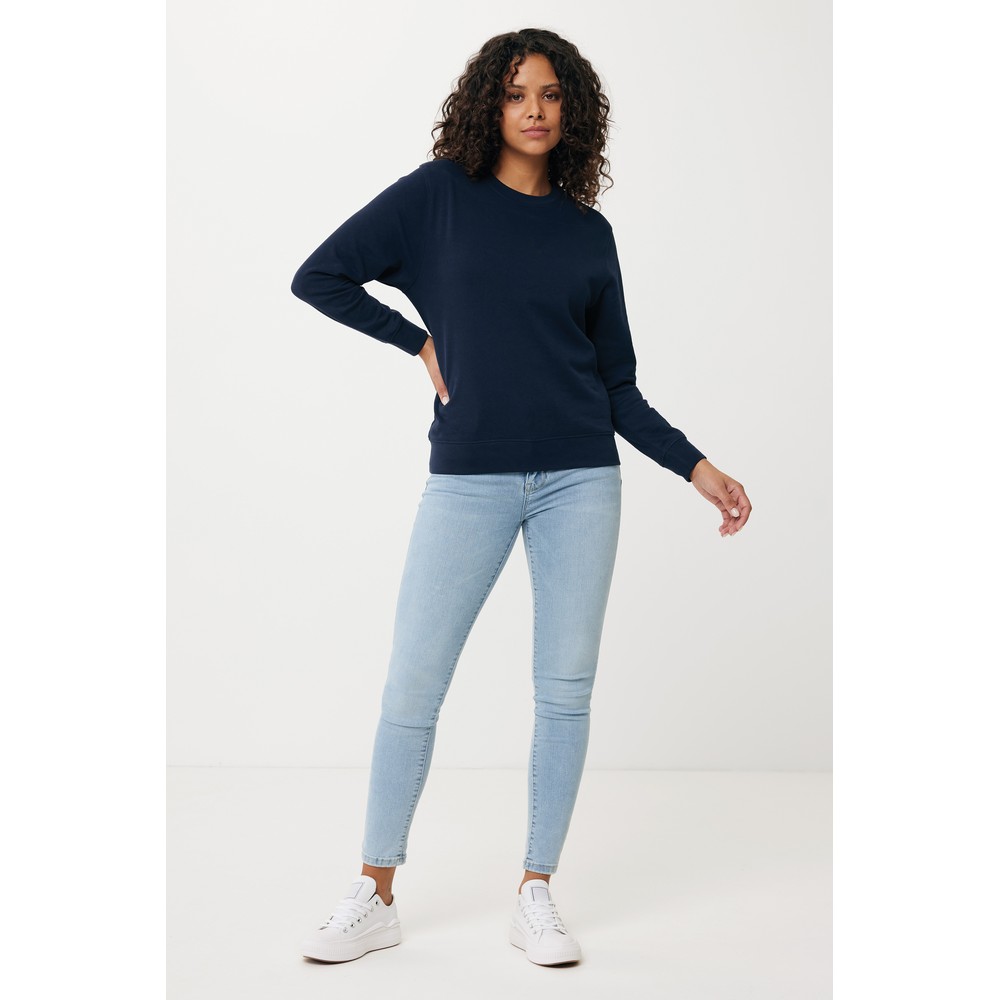 Lekki sweter, unisex, regularny krój, okrągły dekolt, długie rękawy, wykonana w 30% z bawełny z recyklingu i w 70% z bawełny organicznej o gramaturze 280 g/m2, posiada wbudowany znacznik AWARE™, który potwierdza wykorzystanie materiałów z recyklingu, posiada kod QR na metce, który prowadzi do cyfrowego paszportu produktu, 2% wpływów z każdego sprzedanego produktu z kolekcji Impact jest przekazywane na rzecz Water.org, ślad węglowy produktu: 7,04 kg CO2