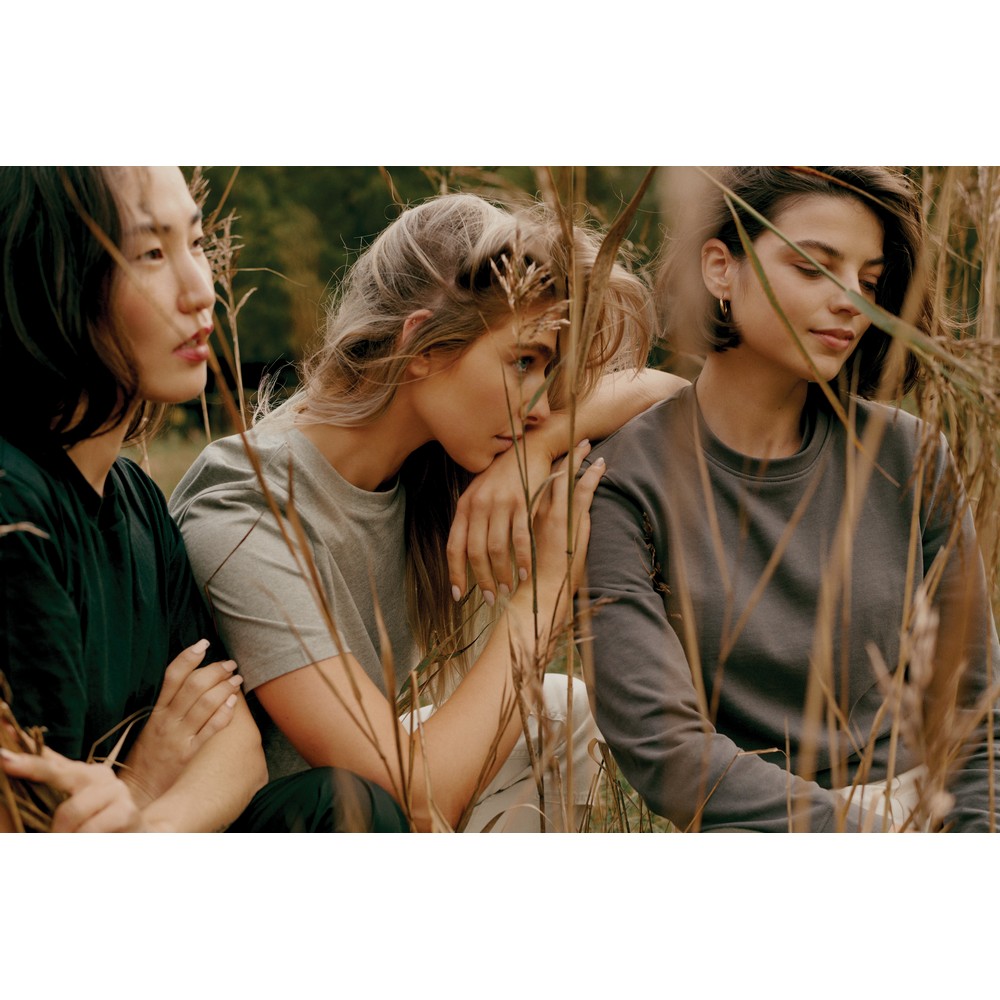Lekki sweter, unisex, regularny krój, okrągły dekolt, długie rękawy, wykonana w 30% z bawełny z recyklingu i w 70% z bawełny organicznej o gramaturze 280 g/m2, posiada wbudowany znacznik AWARE™, który potwierdza wykorzystanie materiałów z recyklingu, posiada kod QR na metce, który prowadzi do cyfrowego paszportu produktu, 2% wpływów z każdego sprzedanego produktu z kolekcji Impact jest przekazywane na rzecz Water.org, ślad węglowy produktu: 7,38 kg CO2