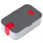 Wyposażony w silikonowe elementy, które gwarantują szczelność i komfort użytkowania, pojemnik posiada także innowacyjne plastikowe zamknięcie, które można wykorzystać jako stabilny stojak na telefon – idealne podczas przerw w pracy czy na wycieczce. Wyjmowana przegródka pozwala na wygodne rozdzielenie przekąsek, utrzymując porządek i świeżość zawartości.