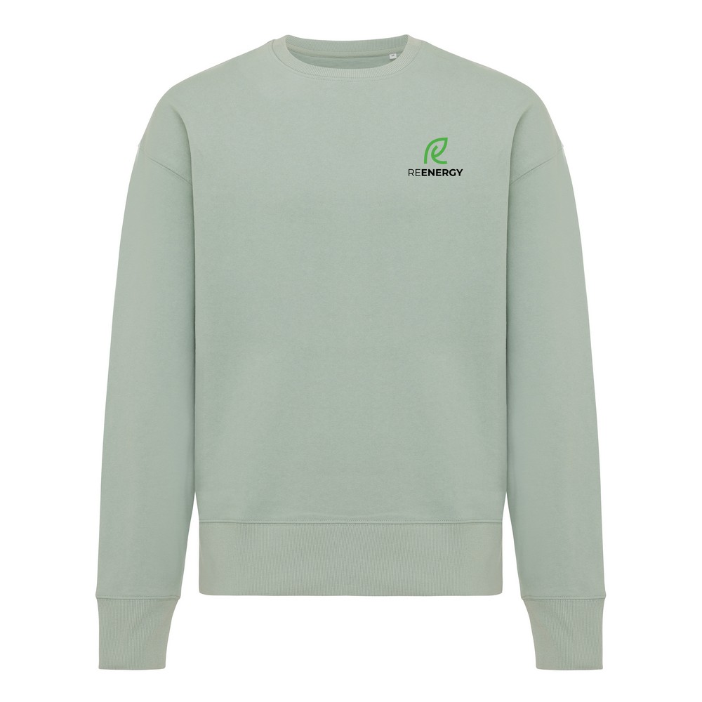 Bluza, unisex, długie rękawy, luźny krój, splot Brushed Sweat, okrągły dekolt, wykonana w 50% z bawełny z recyklingu i w 50% z bawełny organicznej 340 m/m2, bez dodatku poliestru, posiada wbudowany znacznik AWARE™, który potwierdza wykorzystanie materiałów z recyklingu, posiada kod QR na metce, który prowadzi do cyfrowego paszportu produktu, 2% wpływów z każdego sprzedanego produktu z kolekcji Impact jest przekazywane na rzecz Water.org