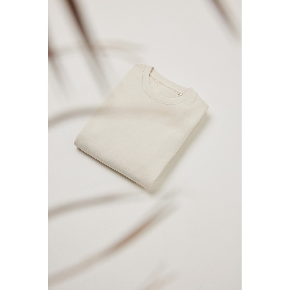 Bluza, unisex, długie rękawy, luźny krój, splot Brushed Sweat, okrągły dekolt, wykonana w 50% z bawełny z recyklingu i w 50% z bawełny organicznej 340 m/m2, bez dodatku poliestru, posiada wbudowany znacznik AWARE™, który potwierdza wykorzystanie materiałów z recyklingu, posiada kod QR na metce, który prowadzi do cyfrowego paszportu produktu, 2% wpływów z każdego sprzedanego produktu z kolekcji Impact jest przekazywane na rzecz Water.org, ślad węglowy produktu: 11,87 kg CO2