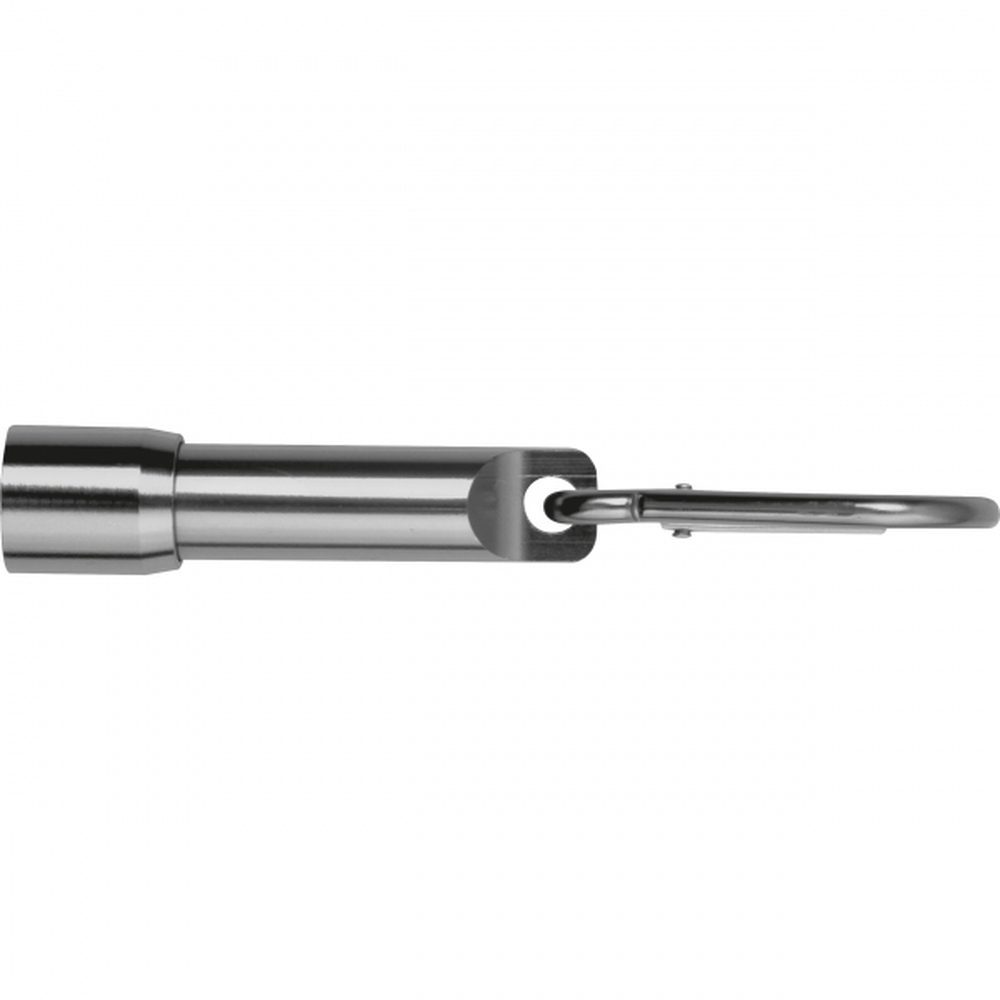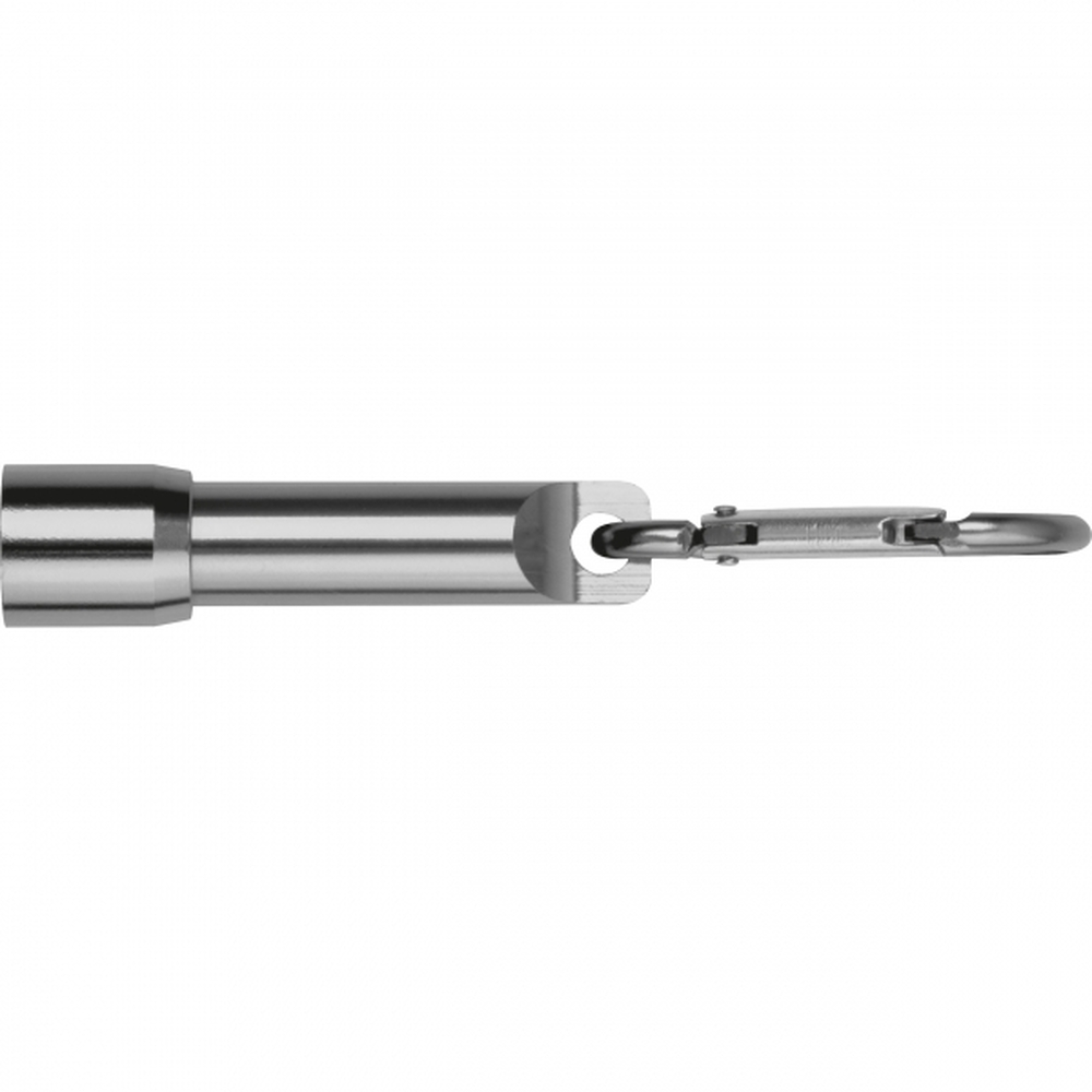 Mini latarka z karabińczykiem wykonana z recyklingowego aluminium.
