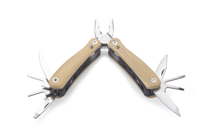 Narzędzie wielofunkcyjne FORT to gadżet w kieszonkowym rozmiarze, wykończony drewnem.