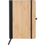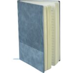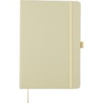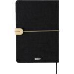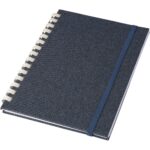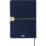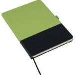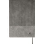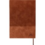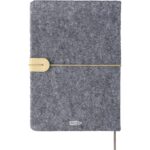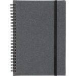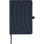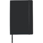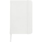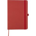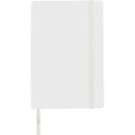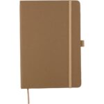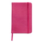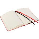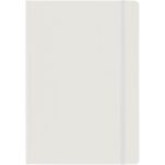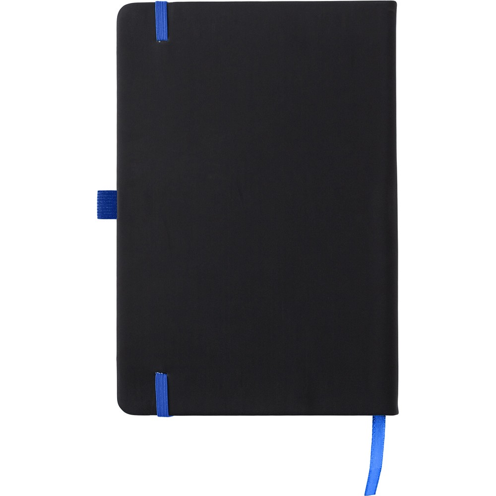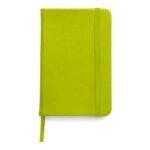 Notatnik (ok. A5, 96 kartek w linie), tasiemka zakładkowa i elastyczna opaska do zamykania, grawer ukazuje powierzchnię w kolorze opaski do zamykania