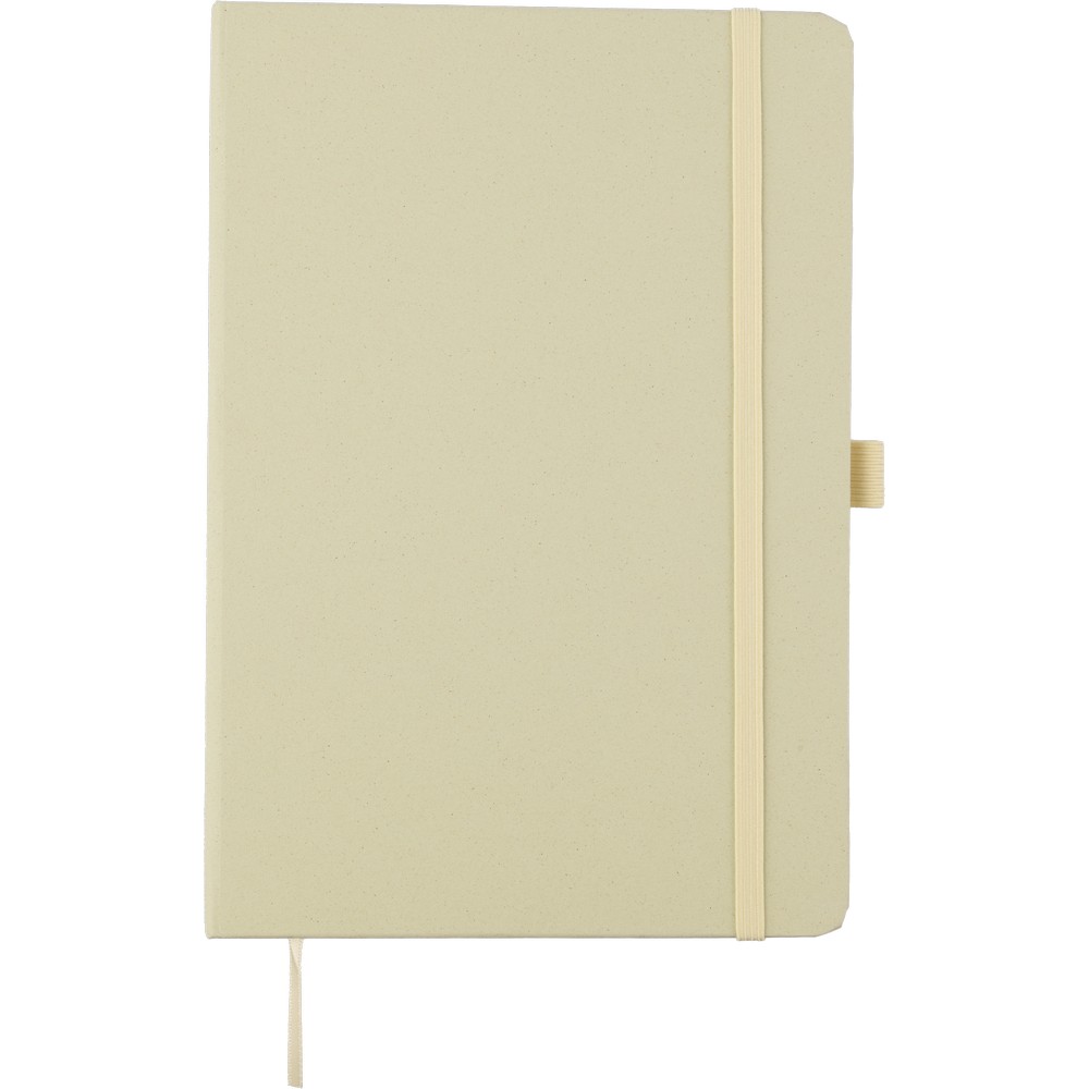 Notatnik w formacie ok. A5, posiada 80 stron w linie drukowanych tuszem sojowym, tasiemka zakładkowa umożliwia wygodne zaznaczanie ostatniej strony lub ważniejszych notatek, dodatkowe zamknięcie w postaci dopasowanej kolorystycznie elastycznej opaski, zmieści się do szkolnego plecaka, notatnik posiada papierową okładkę Favini pochodzącą z Włoch, ikona surowca na produkcie, produkt wykonany z kartonu i resztek produkcyjnych (04 - lawenda, 05 - wiśnia, 06 - cytrusy, 18 - migdały, 25- winogrona) oraz papieru 70 g/m²