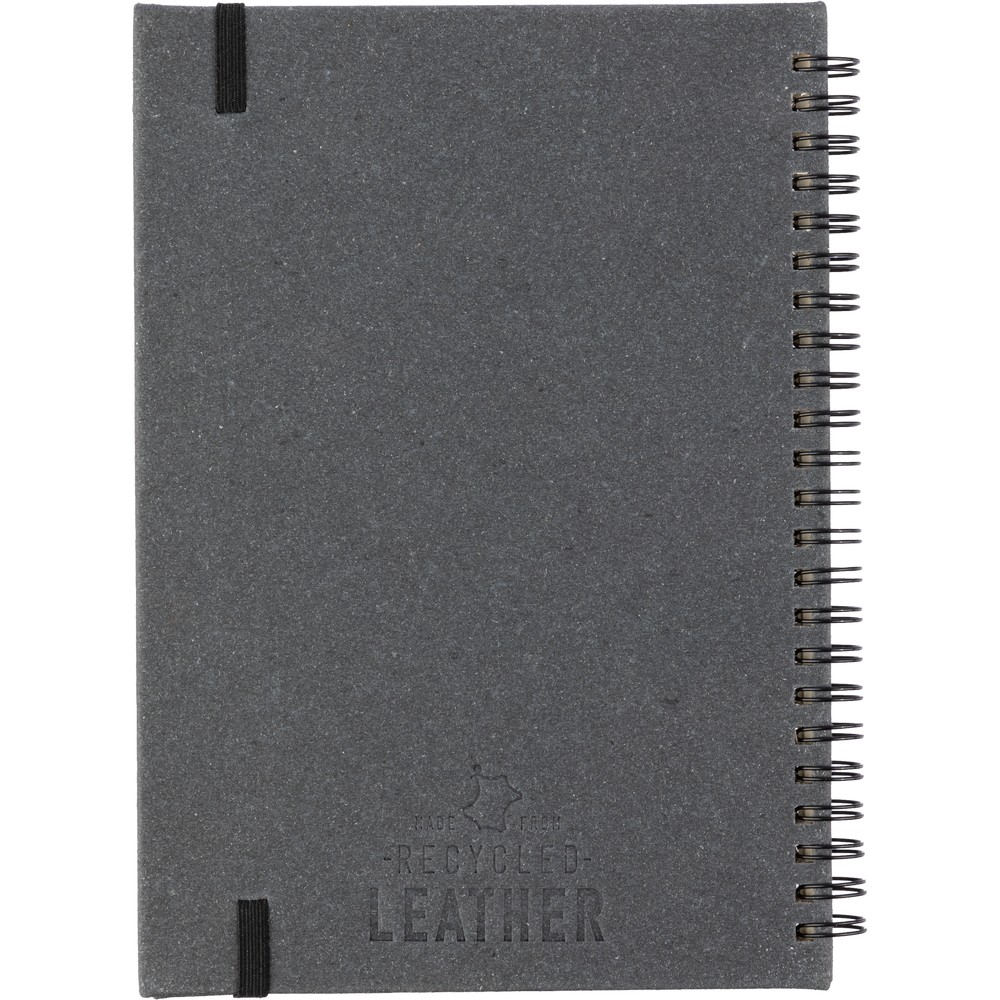 Notatnik ok. A5, posiada 80 stron w linie, miękka okładka, tasiemka zakładkowa umożliwia wygodne zaznaczanie ostatniej strony lub ważniejszych notatek, zmieści się do szkolnego plecaka, produkt wykonany ze skóry z recyklingu