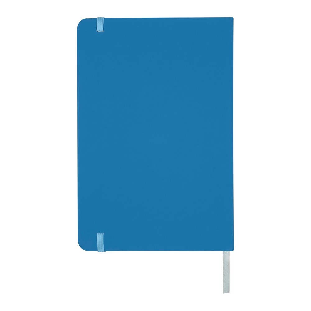 Notatnik w formacie ok. A5, posiada 96 kartek w linie (192 strony), tasiemka zakładkowa umożliwia wygodne zaznaczanie ostatniej strony lub ważniejszych notatek, dodatkowe zamknięcie w postaci dopasowanej kolorystycznie elastycznej opaski, twarda okładka wykonana z PU