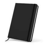Notatnik w formacie ok. A5, posiada 96 kartek w linie (192 strony), tasiemka zakładkowa umożliwia wygodne zaznaczanie ostatniej strony lub ważniejszych notatek, dodatkowe zamknięcie w postaci dopasowanej kolorystycznie elastycznej opaski, twarda okładka wykonana z PU