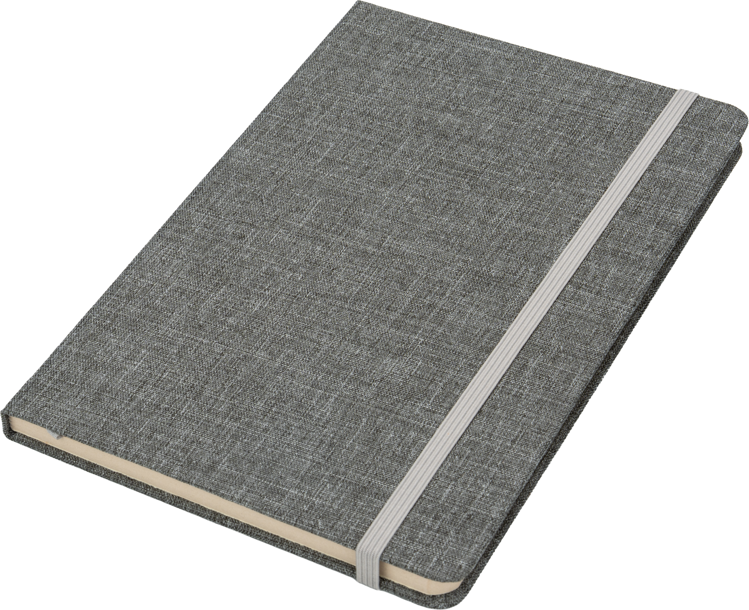 Sztywna okładka z trwałego materiału RPET wyróżnia się subtelną melanżową fakturą, która nadaje elegancki, jednocześnie naturalny charakter, a jej wytrzymałość zapewnia długotrwałe użytkowanie. Praktyczna gumka zabezpiecza notes przed przypadkowym otwarciem, co zwiększa wygodę przenoszenia i ochronę zawartości.