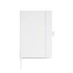 Notes A5 z RPET z gumką na długopis, posiada twardą okładkę 160 białych stron i certyfikat FSC